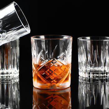 Wholesale High Quality Custom Best Wave Crystal Stabilization Whiskey Glass Water Cup Embossed Carved Design Whiskey Glass